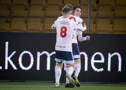 Unge Rasmus Højlund får store roser med på vejen af anfører Carlos Zeca. Den blot 17-årige Rasmus Højlund fik sin første 3F Superliga-kamp fra start,