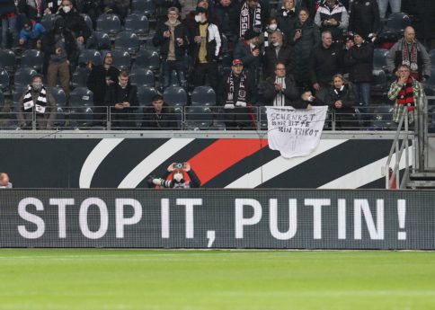 Der blev taget markant afstand fra Ruslands invasion af Ukraine forud for lørdagens Bundesliga-opgør mellem Frankfurt og Bayern München. Deutsche Bank Park i Frankfurt var
