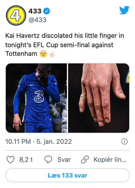 Chelsea vandt i øvrigt opgøret 2-0, og der spilles returopgør på onsdag i næste uge.