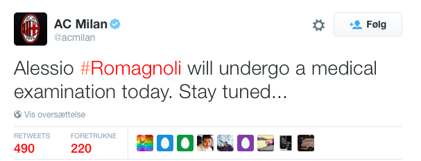 AC Milan bekræfter nu, at de har en spiller til lægetjek i dag.