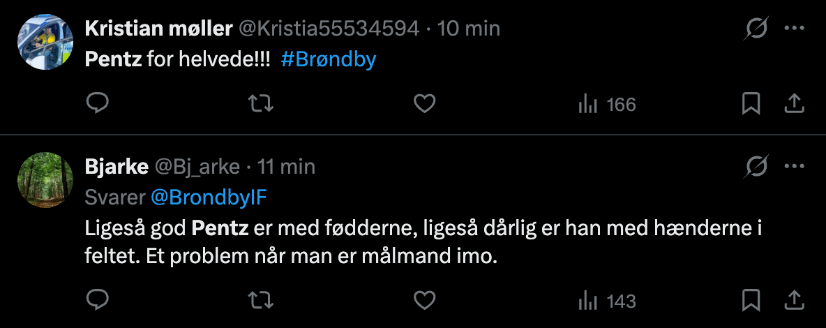 Det er heller ikke gået ubemærket hen, og flere Brøndby-fans er derfor også røget til tasterne på det sociale medie X, hvor dne østrigske målmand får en hård medfart.