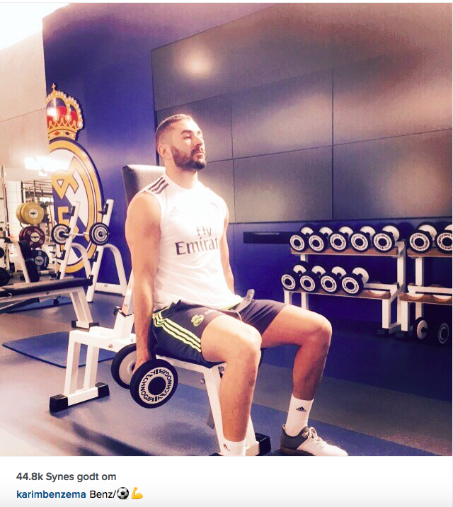 Karim Benzema arbejder hårdt på at komme sig oven på en skade, og det foregår i klubbens luksuriøse træningslokale.
