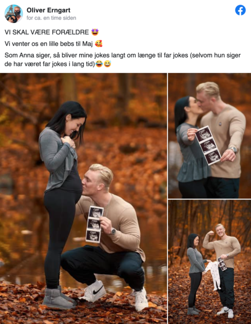 Således afslører Oliver på Facebook, at de til maj skal være forældre til en lille bebs.