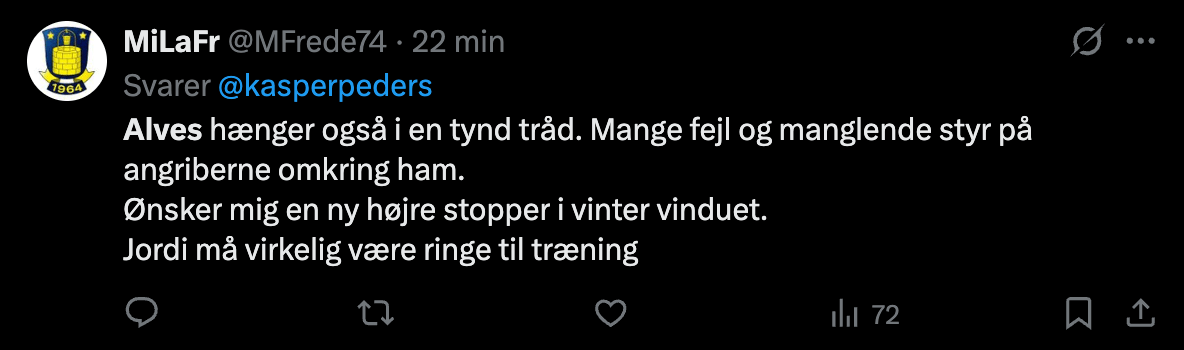 Undervejs i opgøret så Frederik Alves skidt ud i flere situationer, og det er bestemt heller ikke gået ubemærket hen på det sociale medie X, hvor midtstopperen får en hård medfart.