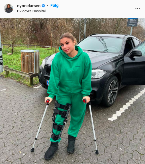 Heldigvis er korsbåndet eller menisken ikke revet over, men derimod er hun endt med et hævet knæ og mulighed for, at der er blevet kappet nogle ledbånd. Sådan lyder det fra Nynne via sin Instagram, hvor hun også har lagt et billede op med sit nye ‘gear’.