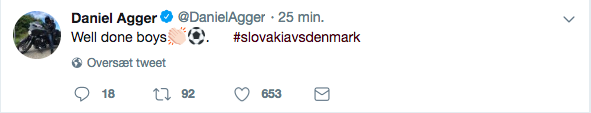 Det virker tilsyneladende også til, at det alternative landshold har imponeret den tidligere landsholds-anfører Daniel Agger, der efter kampens slutfløjt lavede dette tweet: