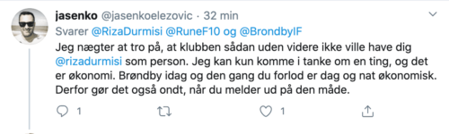 Riza Durmisis Instagram-opslag har også affødt flere reaktioner på det sociale medie Twitter, hvor flere Brøndby-fans nu langer ud efter den tidligere landsholdsspiller.