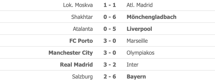 Herunder kan du se hvordan aftenens resterende Champions League-kampe endte: