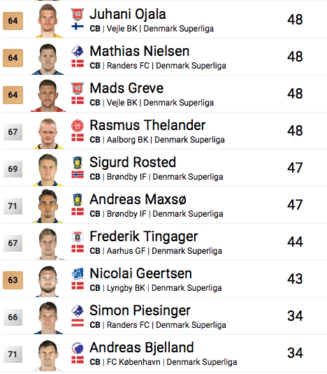 Hvis du vil se de bedste Brøndby-spillere, så kan du klikke her, mens ud via dette link kan se de fem bedste FC København-spillere.