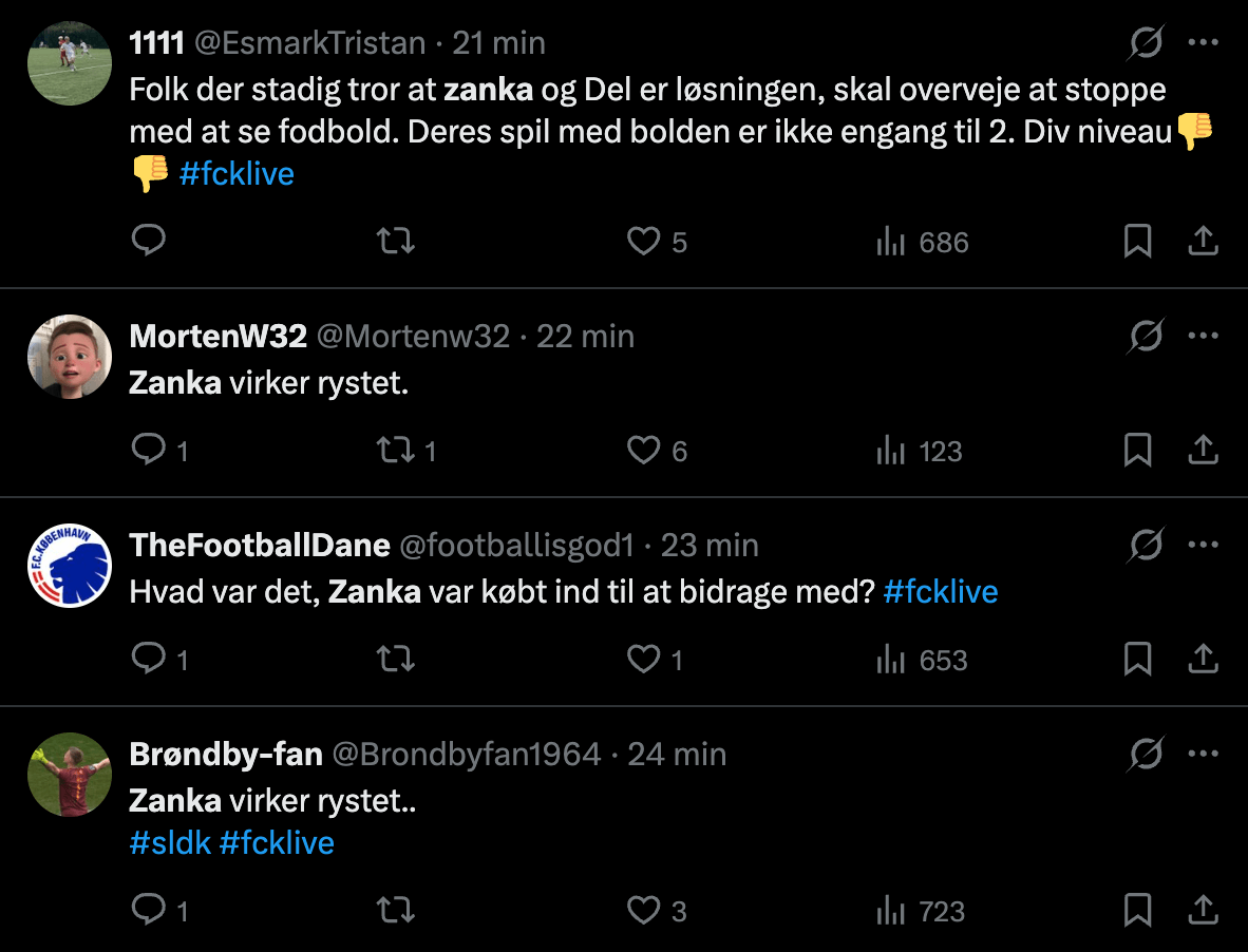 I opgøret har især Mathias ‘Zanka’ Jørgensen gjort sig negativt bemærket, da han var stærkt impliceret i gæsternes 2-0 til scoring, og det har også fået flere FCK-fans til tasterne på det sociale medie X, hvor kritikken af den rutinerede midtstopper er stor.