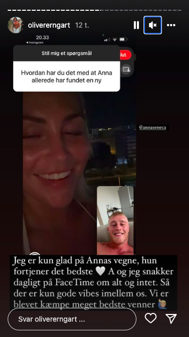 Selvom fyren stadig er ukendt, har Anna fortalt, at det er en som hun har kendt gennem seks til syv år, og ovenikøbet også er en som ekskæresten Oliver kender. Det kunne måske få nogle ekskærester til at blive jaloux, men sådan er det overhovedet ikke for Olivr, der på Instagram har afsløret, at hun i stedet er meget glad på Annas vegne.