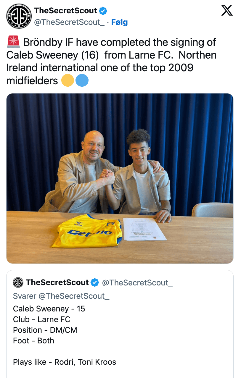 Og noget tyder altså også på, at det er et stort talent, som Brøndby er lykkedes med at få fingrene i.