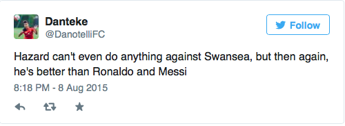 Eden Hazard bliver efterlyst på Twitter efter dagens præstation i mod Swansea.