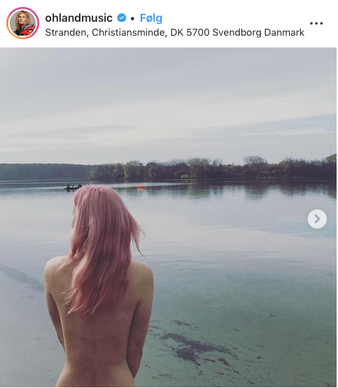 Den danske musikproducer og ‘X Factor’-dommer Oh Land hopper i havet uden et trevl på kroppen.