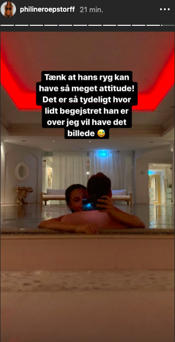 Hverken Philine eller Bendtner har været bange for at dele billeder, hvor der ikke er særligt meget tøj på, og det har Philine nu gjort endnu en gang på sin Insta-story. Her er de nemlig i en form for spaophold, og det har Philine altså foreviget med nedenstående billede.