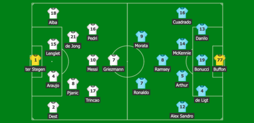 Du kan se FC Barcelona og Juventus’ startopstilling herunder: