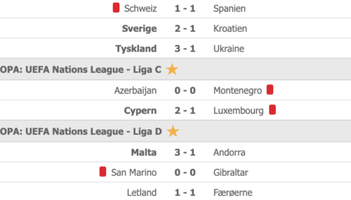 Herunder kan du se, hvordan aftenens resterende kampe endte: