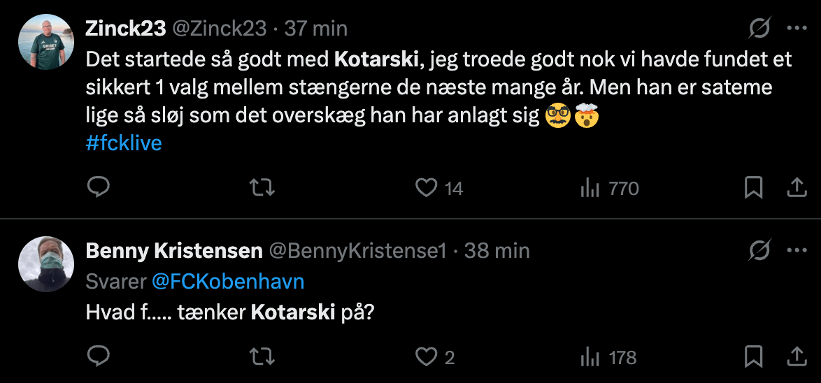 Og det er altså heller ikke gået ubemærket hen på det sociale medie X, hvor FCK-keeperen får en hård medfart.