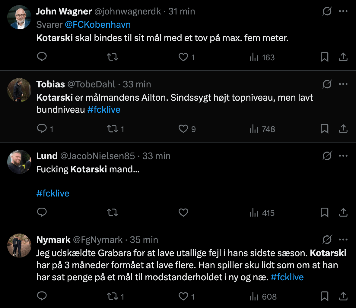Og det er altså heller ikke gået ubemærket hen på det sociale medie X, hvor FCK-keeperen får en hård medfart.