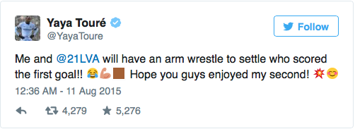 Nu er Yaya så kommet med et forslag til, hvordan det bliver afgjort. De skal simpelthen lægge arm om det. Stakkels David Silva.